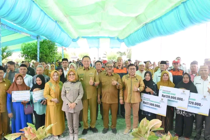 Erapena.com- Bupati Boalemo Drs. Rum Pagau menyerahkan bantuan Baznas Kabupaten Boalemo kepada mustahik, bertempat di mesjid Kubro Desa Molombulahe Kecamatan Paguyaman, Selasa, 15 Juli 2025.