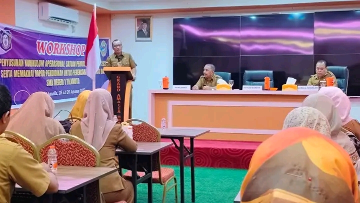 Erapena.com- SMA Negeri 1 Tilamuta menggelar workshop penyusunan kurikulum Operasional Satuan Pendidikan Tahun Pelajaran 2025 – 2026 serta memaknai rapor Pendidikan untuk perencanaan berbasis data, bertempat di Hotel Grand Amalia, Senin 25 Agustus 2025.