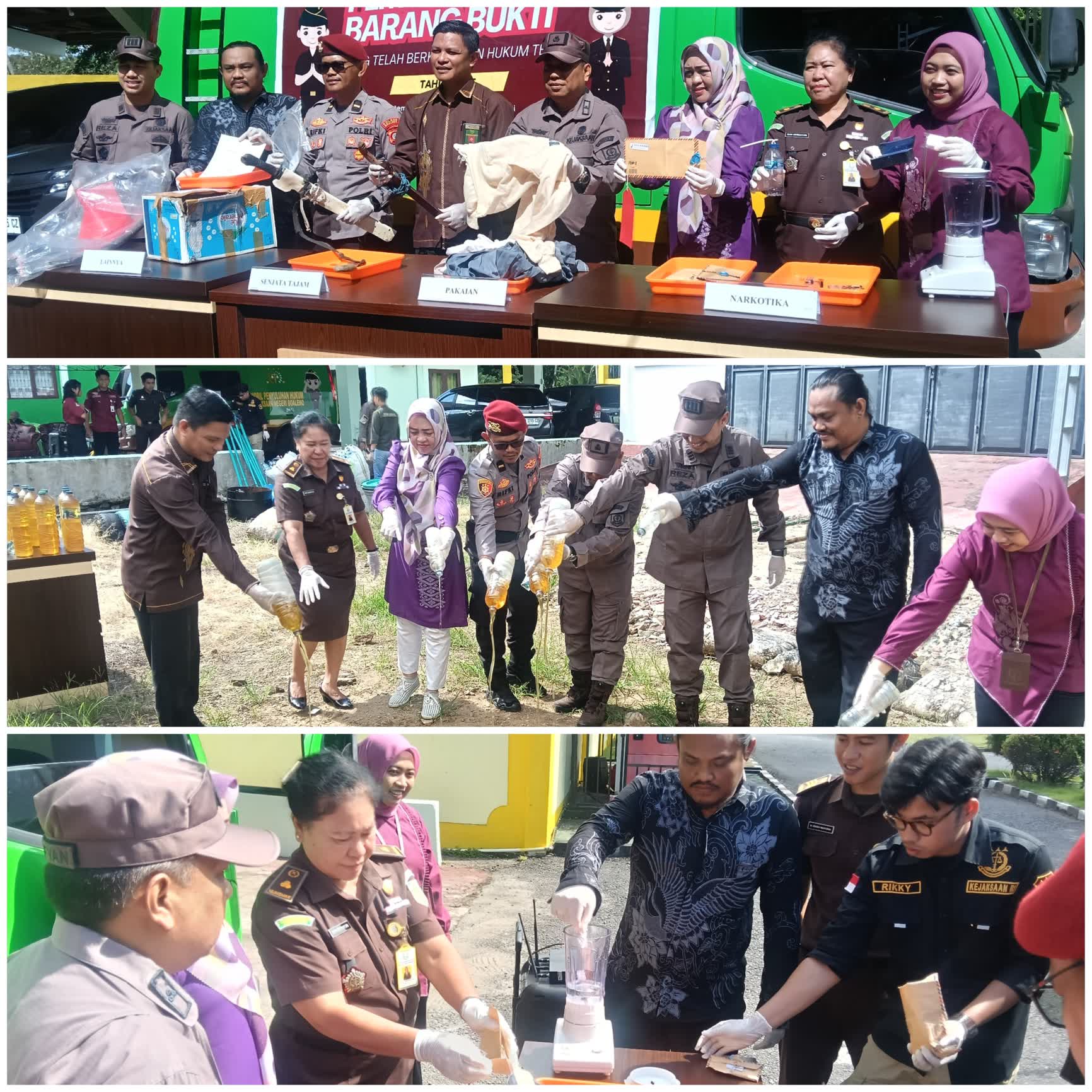 Dijelaskan Sofyan, barang bukti yang dimusnahkan terdiri beberapa perkara diantaranya, Tindak Pidana narkotika, tindak pidana perlindungan konsumen, perlindungan anak serta perkara minyak dan gas bumi.