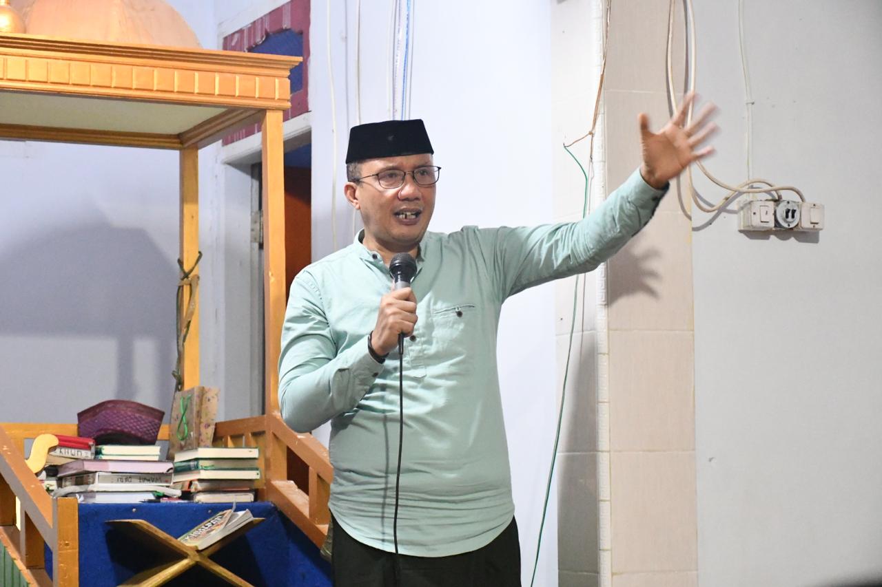 Usai sholat tarwih berjamaah, Wakil Bupati Boalemo Lahmuddin Hambali menyerahkan bantuanpaket ramadhan kepada kaum dhuafa.