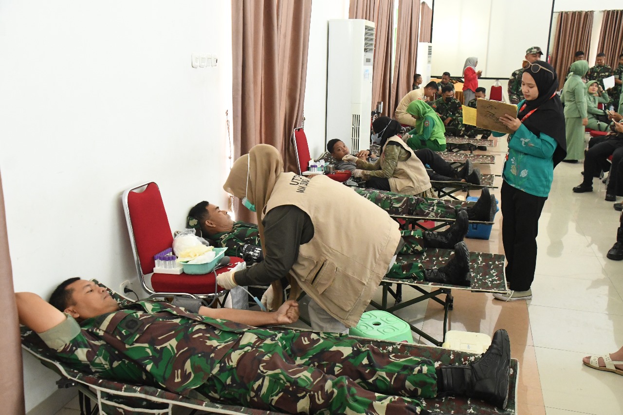 Erapena.com, GORONTALO – Dalam rangka memperingati Hari Ulang Tahun (HUT) Tentara Nasional Indonesia (TNI) ke-80, Komando Resor Militer (Korem) 133/Nani Wartabone (NW) beserta seluruh satuan jajarannya menggelar aksi donor darah hari ini. Kegiatan ini dipusatkan di Aula Kusno Danupoyo Makorem 133/NW dan dihadiri oleh para prajurit, PNS TNI, dan anggota Persit Kartika Chandra Kirana. Kamis (25/9/2025).