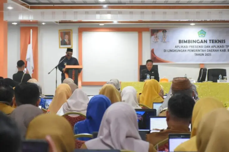 Pernyataan tersebut disampaikan saat membuka kegiatan Bimbingan Teknis (Bimtek) aplikasi presensi digital yang berlangsung di Hotel Grand Amalia, Senin (10/11/2025).