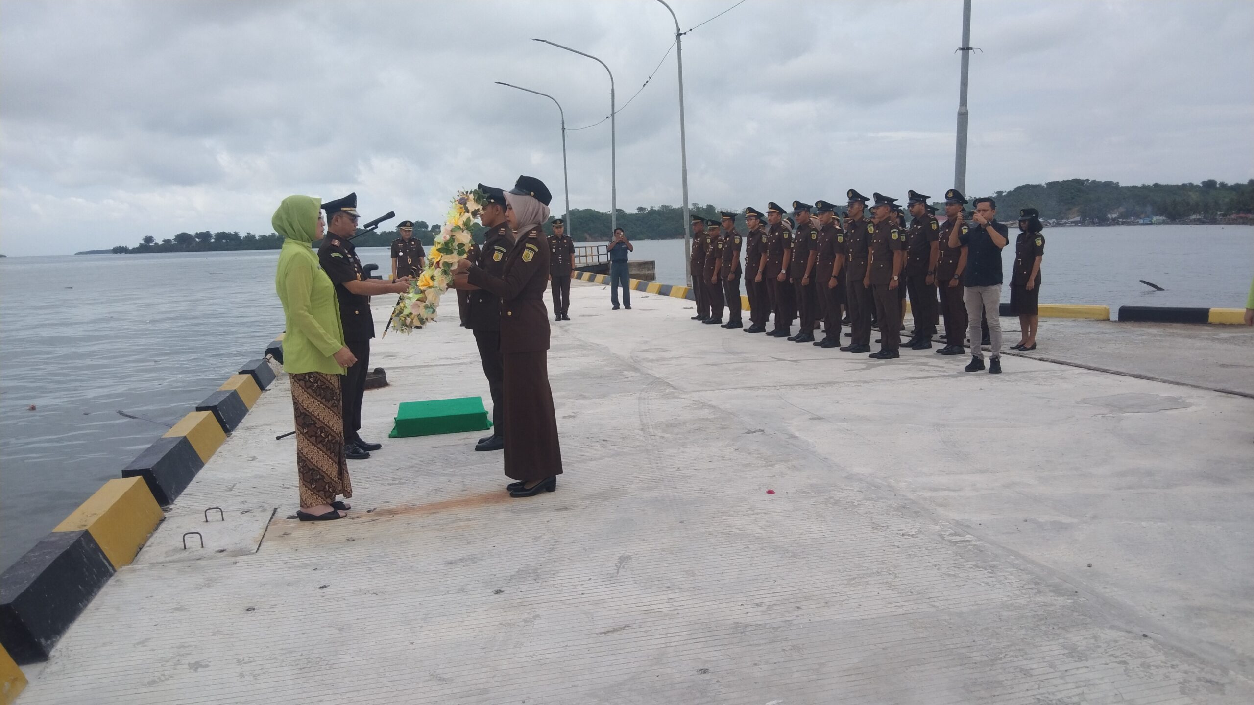 Upacara pelarungan bunga, dipimpin oleh, Kepala Kejaksaan Negeri Boalemo, Yopy Adriansyah, S.H,M.H., di ikuti para jajaran pejabat Kejaksaan Boalemo dan pengurus IAD Daerah Boalemo.