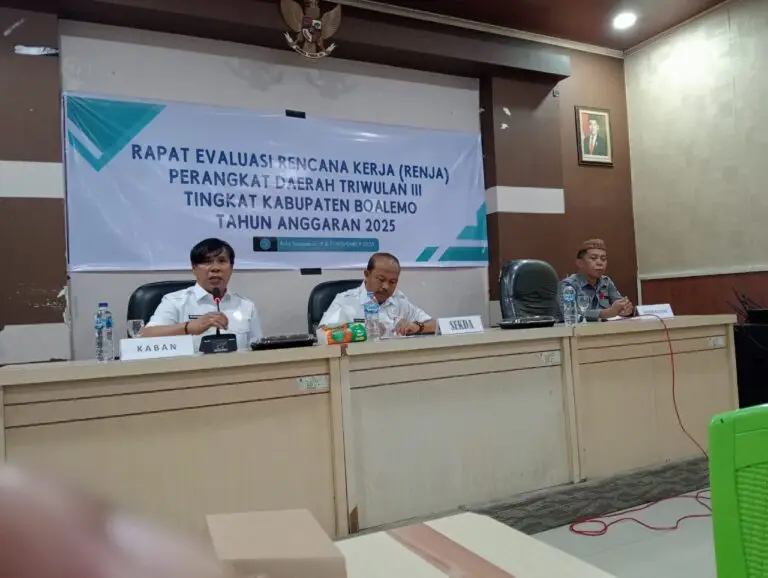 Erapena.com- Pemerintah Kabupaten Boalemo melalui Badan Perencanaan, Penelitian dan Pengembangan Daerah (Bapppeda) menggelar rapat evaluasi rencana kerja (Renja) perangkat daerah tahun berjalan, yang berlangsung di Aula Bapppeda, Rabu (19/11/2025).