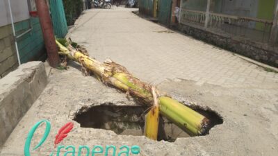 ERAPENA.COM-Plat Deker yang berlubang membuat warga Desa Bajo resah sehinggah ditanami pohon pisang. Kondisi jalan…